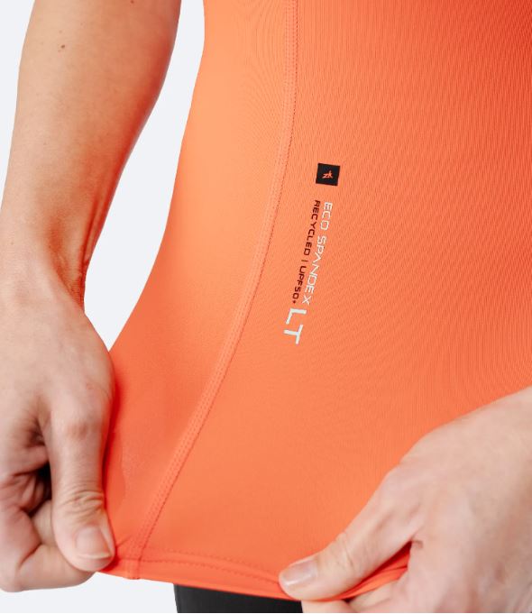 Constructed from ultra-light 190gsm recycled nylon and spandex, this top offers high elongation four-way stretch for unrestricted movement during long training sessions and competitive racing. The breathable, fast-drying fabric keeps you cool, while certified UPF 50+ protection shields you from harmful UV rays, even when wet. A 3D body-mapped fit ensures a streamlined profile that moves with your body, and anti-rash flatlock stitching provides lasting comfort through continuous motion.